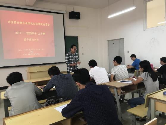 2017年9月26日上午十点整,在二教602教室召开了“共青团云南艺术学院文华学院委员会2017——2018学年上学期干部培训会”,会议由院团委董创书记主持。