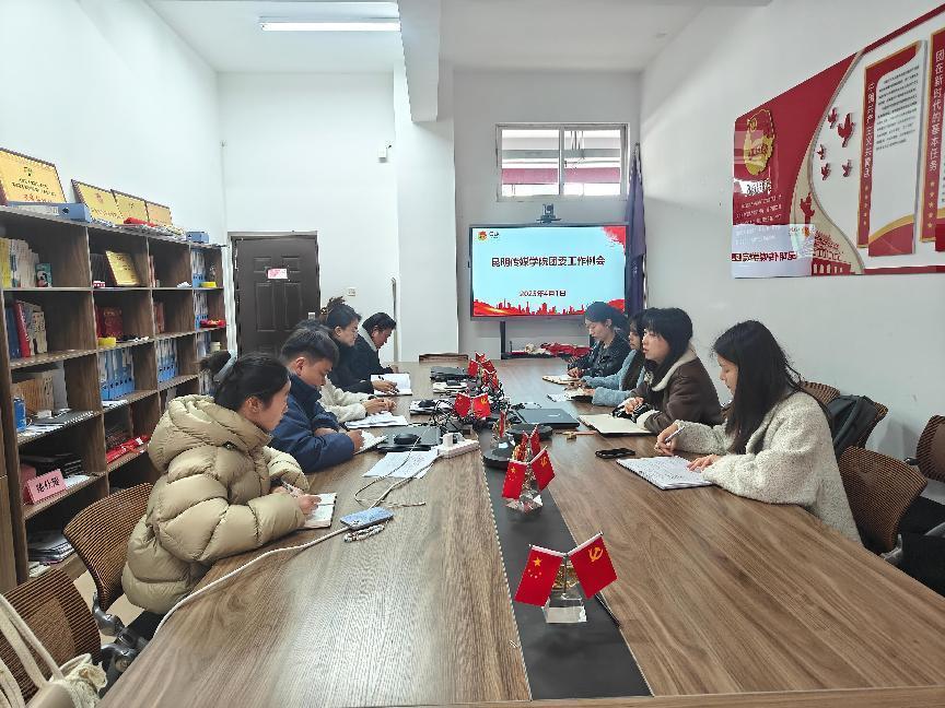 4月1日,共青团昆明传媒学院委员会在亦归楼E202召开政治理论中心组学习会暨团委第二次工作例会,专题学习习近平总书记考察云南重要讲话重要指示精神,并开展研讨交流。校团委全体成员、各学院团总支书记参会,会议由校团委书记韩玉娇主持。